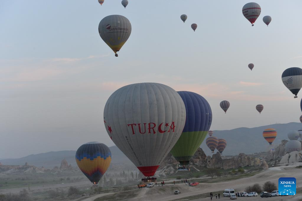 Hot air balloons fly over Cappadocia, Türkiye, on June 25, 2023. Cappadocia is a popular tourist attraction in central Türkiye known for its Goreme National Park, which was added to the UNESCO World Heritage List in 1985. (Mustafa Kaya/Handout via Xinhua)