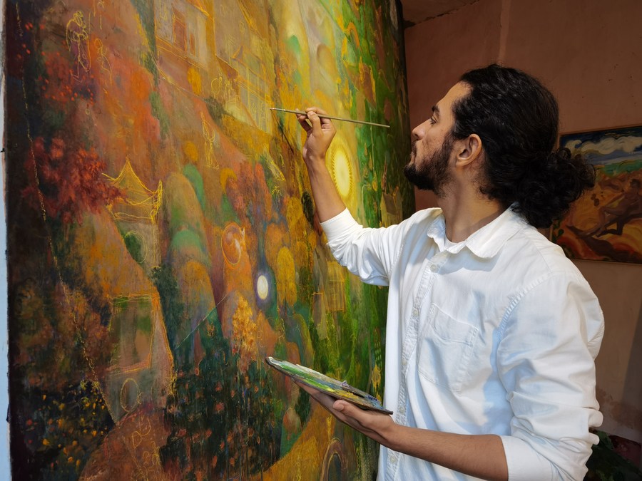 Karami, 30, has loved art since childhood. After graduating from a university in Malaysia in 2012, he attended Donghua University and Shanghai University, both in Shanghai, to study design and oil painting. Growing tired of the city, he longed for a peaceful place where he could live and create.