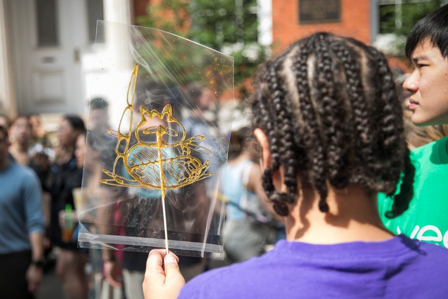 An attendee carries a sugar painting during the Dragon Fest in New York, the United States, on June 24, 2023. (Photo by Michael Nagle/Xinhua)