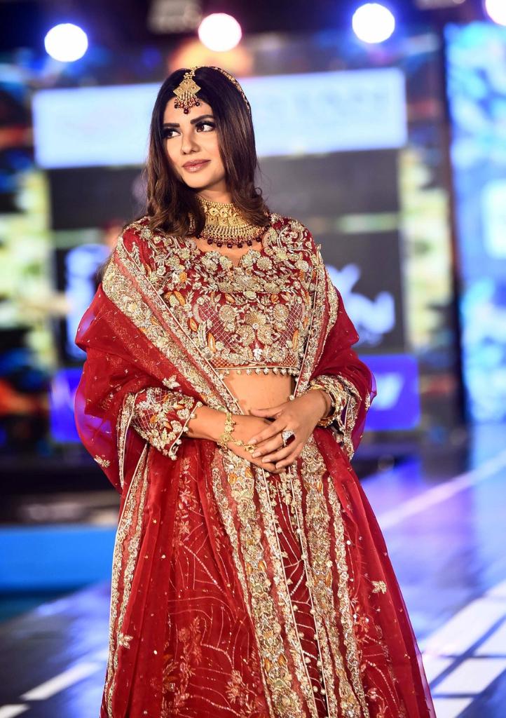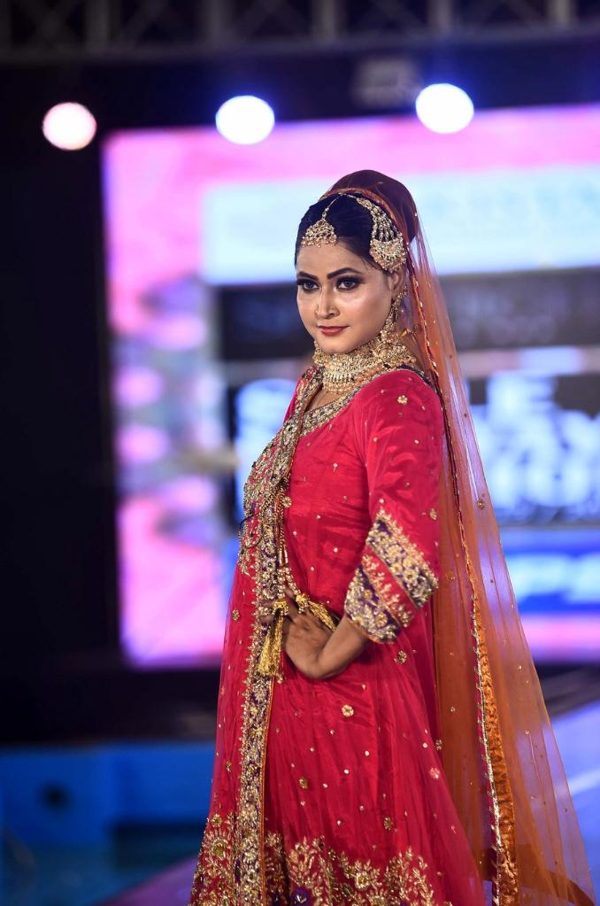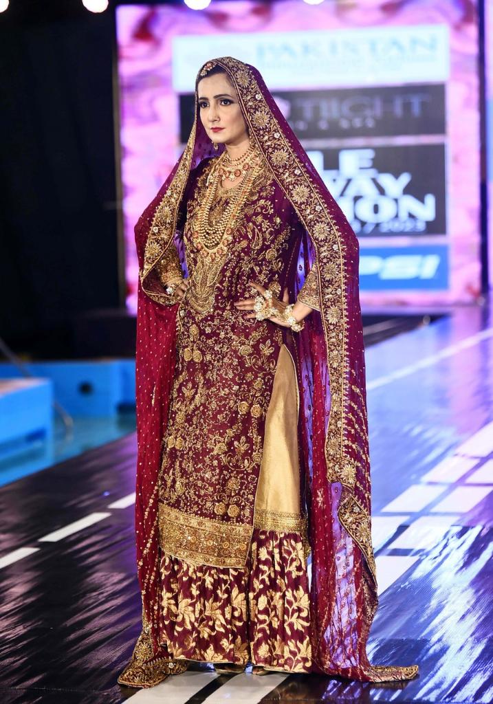A model presents a creation during a fashion show in southern Pakistani port city of Karachi on June 25, 2023. (Str/Xinhua)