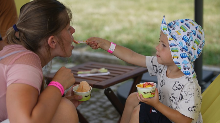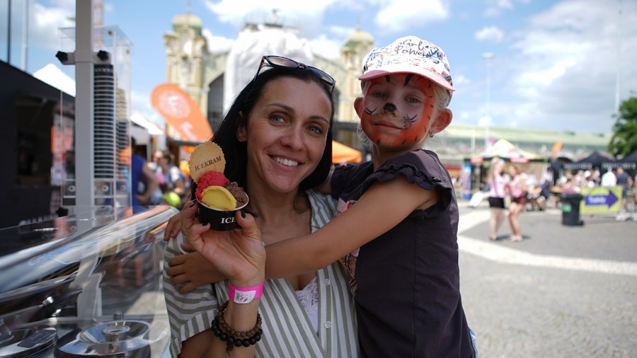 People enjoy ice cream during the Prague Ice Cream Festival in Prague, the Czech Republic, on June 25, 2023. (Photo by Dana Kesnerova/Xinhua)