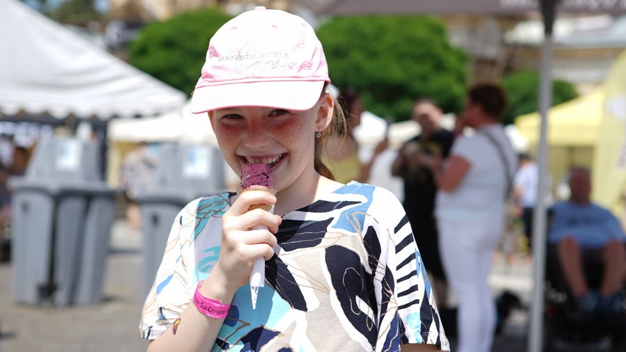 A girl enjoys ice cream during the Prague Ice Cream Festival in Prague, the Czech Republic, on June 25, 2023. (Photo by Dana Kesnerova/Xinhua)