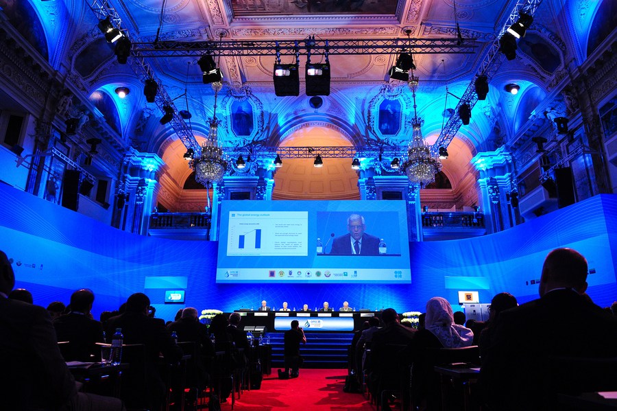 Photo taken on June 3, 2015 shows the opening ceremony of the Organization of the Petroleum Exporting Countries (OPEC) 's 6th International Seminar at Hofburg Place in Vienna, Austria. (Xinhua/Qian Yi) ■