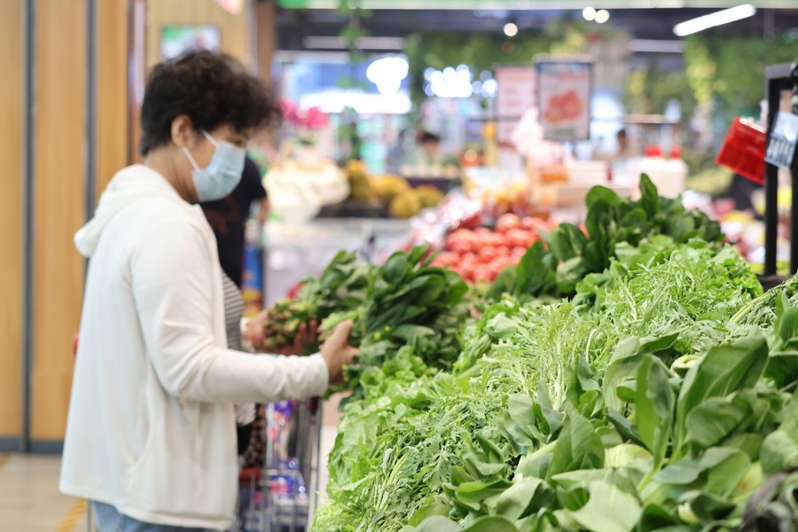 A customer shops at a supermarket in Nanjing, east China's Jiangsu Province, June 9, 2023. (Photo by Su Yang/Xinhua)