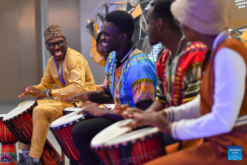African performers play drums during the third China-Africa Economic and Trade Expo at the China-Africa Economic and Trade Cooperation Promotion Innovation Demonstration Park (Hunan Gaoqiao Grand Market) in Changsha, central China's Hunan Province, June 29, 2023. The third China-Africa Economic and Trade Expo kicked off Thursday in Changsha. The expo welcomes more "Made in Africa" products into China and aims to boost business links between the two sides.
