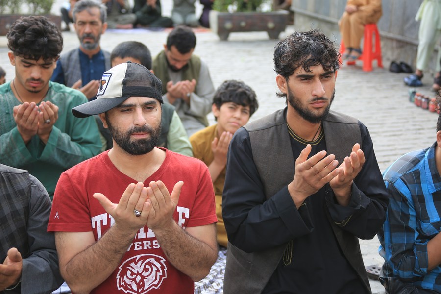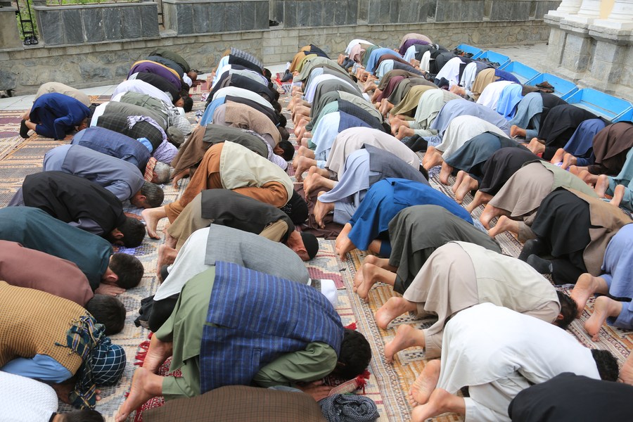People pray during Eid al-Adha in Kabul, capital of Afghanistan, on June 28, 2023. (Photo by Saifurahman Safi/Xinhua)