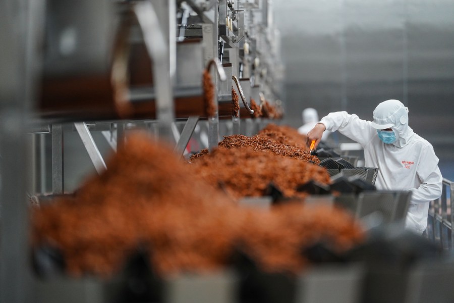 An employee works at a production base of Jinzai Food Group Company Limited in Yueyang, central China's Hunan Province, June 28, 2023. (Xinhua/Zou Yu)