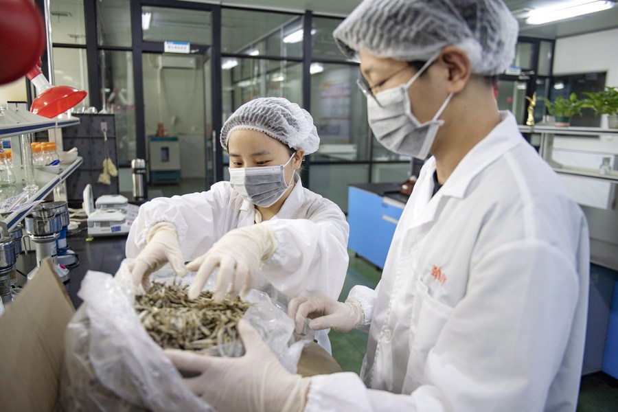 Staff members test wild anchovy products from Kenya in a lab of Jinzai Food Group Company Limited in Yueyang, central China's Hunan Province, June 28, 2023. (Xinhua/Sun Ruibo)