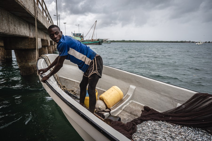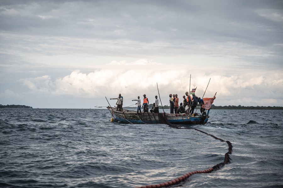 Fishermen catch fish in east Kenya, June 22, 2023. (Xinhua/Wang Guansen)
