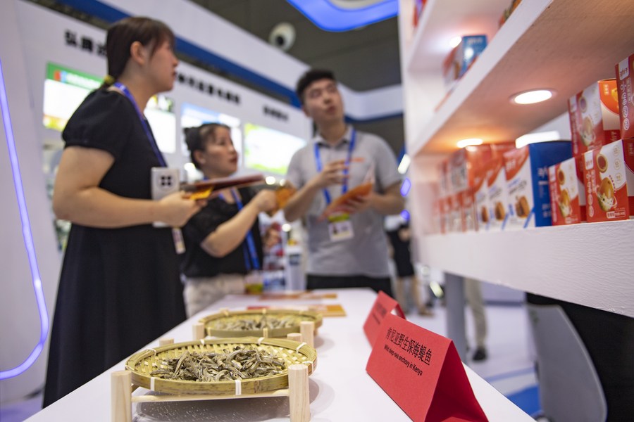 CHANGSHA, June 30 (Xinhua) -- The first batch of wild anchovy products from Kenya debuted at the third edition of the China-Africa Economic and Trade Expo on Thursday, marking a new step in China's efforts in promoting the import of more high-quality African food and agricultural products, enriching the choices of domestic consumers, and boosting the trade between China and Africa.