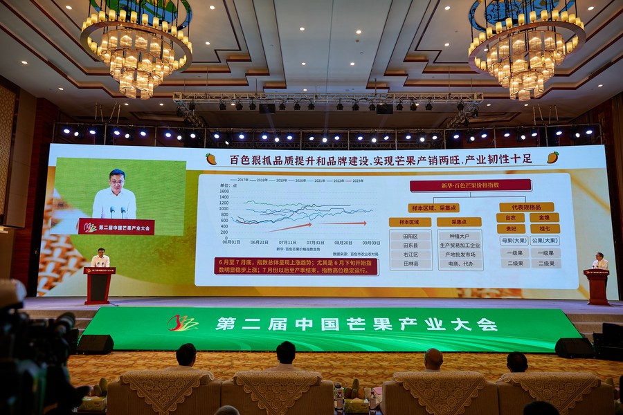 The 2nd China Mango Industry Conference is held in Tiandong County of Baise City in south China's Guangxi Zhuang Autonomous Region, June 28, 2023. (China Mango Industry Conference/Handout via Xinhua)