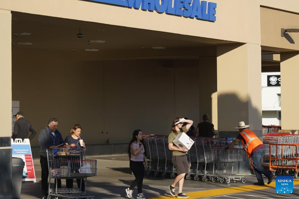 Customers walk out of a supermarket in Foster City, the United States, June 29, 2023. The growth rate of U.S. gross domestic product (GDP) was revised up notably to 2 percent in the first quarter, up from the previous estimate of 1.3 percent, according to data issued by the U.S. Bureau of Economic Analysis on Thursday. (Xinhua/Wu Xiaoling)