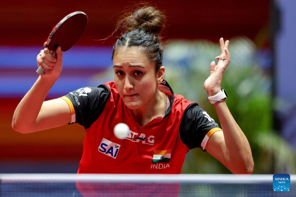 Batra Manika of India competes during the women's singles round of 16 match against Shin Yubin of South Korea at the 2023 World Table Tennis (WTT) Contender Zagreb in Zagreb, Croatia on June 30, 2023. (Photo by Igor Kralj/PIXSELL via Xinhua)