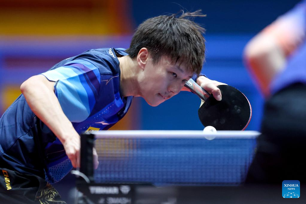 Lin Shidong of China competes during the men's singles round of 16 match against Sharath Kamal Achanta of India at the 2023 World Table Tennis (WTT) Contender Zagreb in Zagreb, Croatia on June 30, 2023. (Photo by Igor Kralj/PIXSELL via Xinhua)