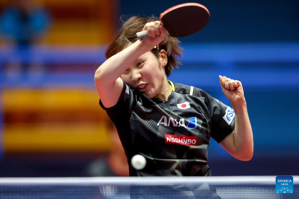 Miu Hirano of Japan competes during the women's singles round of 16 match against Choi Hyojoo of South Korea at the 2023 World Table Tennis (WTT) Contender Zagreb in Zagreb, Croatia on June 30, 2023. (Photo by Igor Kralj/PIXSELL via Xinhua)