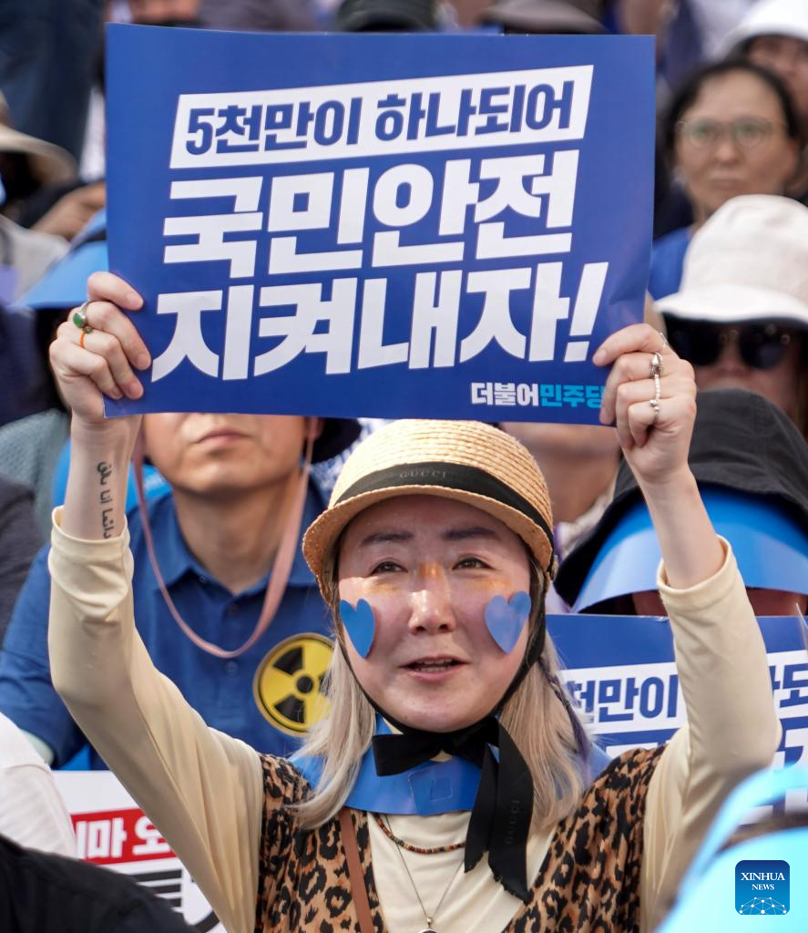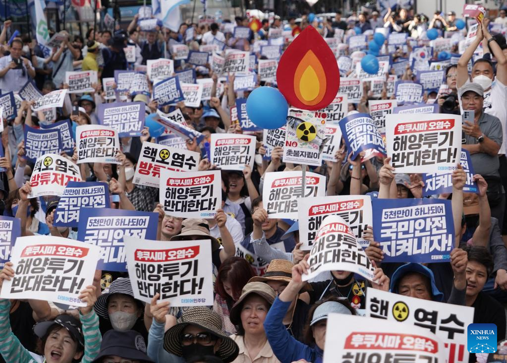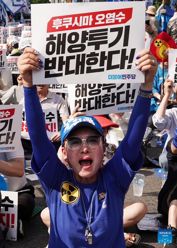 SEOUL, July 1 (Xinhua) -- South Korea's main opposition Democratic Party (DP) held a rally in central Seoul on Saturday to oppose Japan's nuclear-contaminated water discharge plan and urge the government to make clear its opposition to Japan's plan.