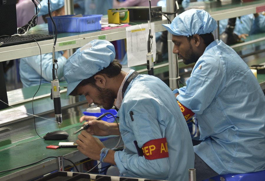 Workers work at the new factory of Transsion Holdings in the Meghna Industrial Economic Zone, Narayanganj, Bangladesh, May 24, 2023. (Xinhua)
