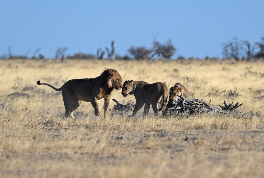 Lions are pictured at the Etosha National Park in northern Namibia, Aug. 15, 2022. (Xinhua/Chen Cheng)