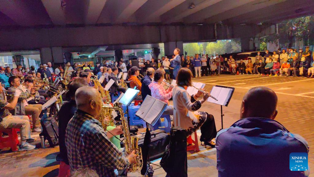 HARBIN, July 4 (Xinhua) -- Against the backdrop of bustling traffic and intermittent honking horns, a group of elderly individuals, each clutching their respective instruments, mesmerized the audience with their passionate melodies.