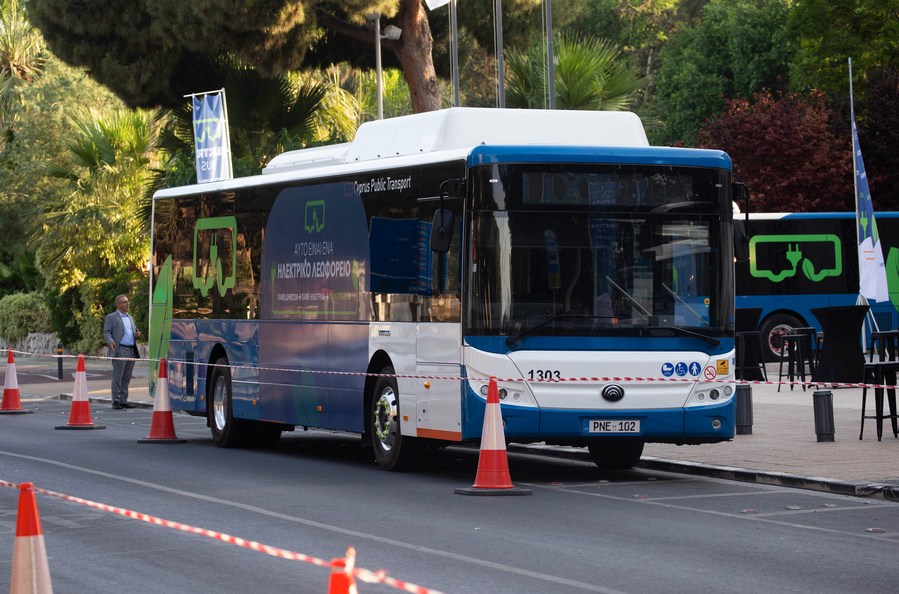 "Having electric buses running around the city is one step forward towards our mission to reach zero carbon by 2050," Alexis Vafeades, minister of transport, communications and works told Xinhua at the unveiling ceremony, adding that "it's a first step in many more to come."