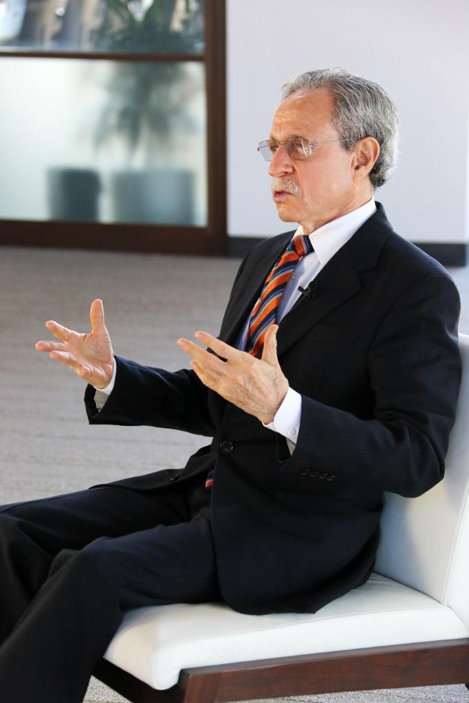 Robert Lawrence Kuhn, a U.S. expert on China, also chairman of the Kuhn Foundation, speaks in an interview with Xinhua in Los Angeles, the United States, Oct. 15, 2019. (Xinhua/Gao Shan)