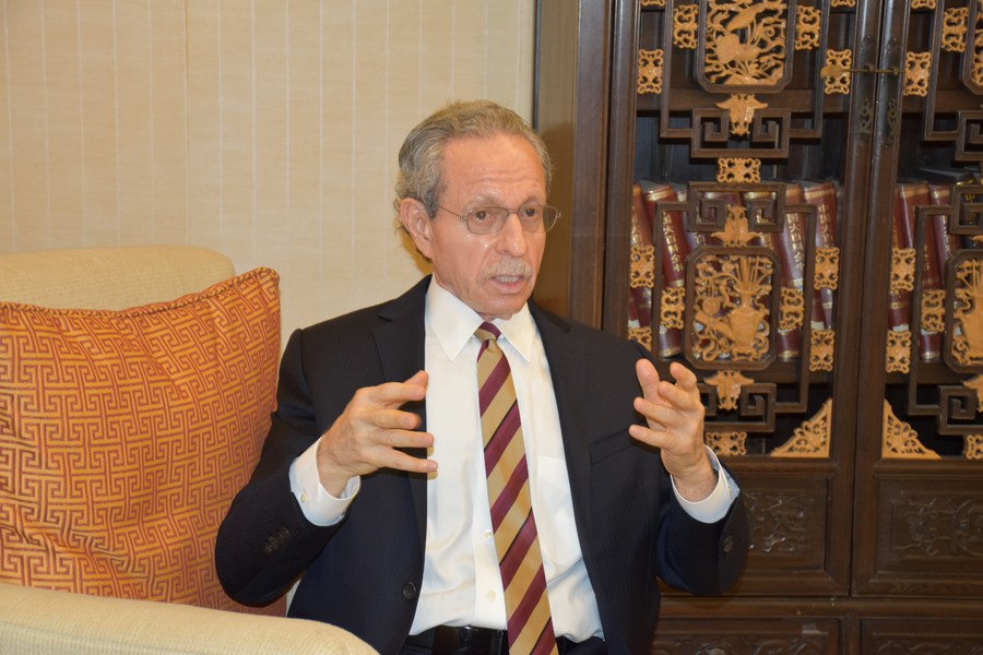 Robert Lawrence Kuhn, a leading China expert and chairman of the Kuhn Foundation, is interviewed with Xinhua in New York, the United States, on Oct. 23, 2018. (Xinhua/Li Rui)