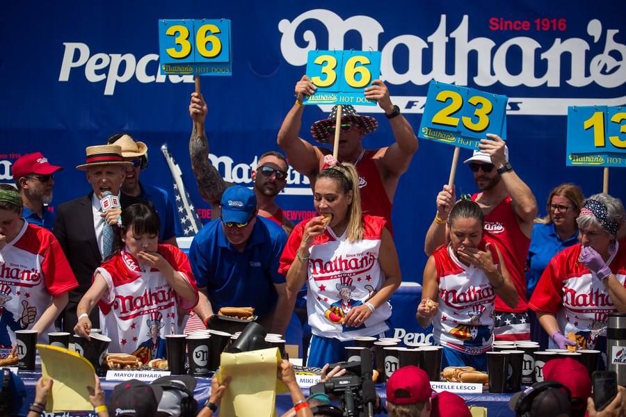 Meanwhile, Miki Sudo, 37, won the women's championship for the ninth time on Tuesday morning by consuming 39.5 hot dogs and buns in 10 minutes, also less than her own record of 48.5 hot dogs and buns set in the same event in 2020.