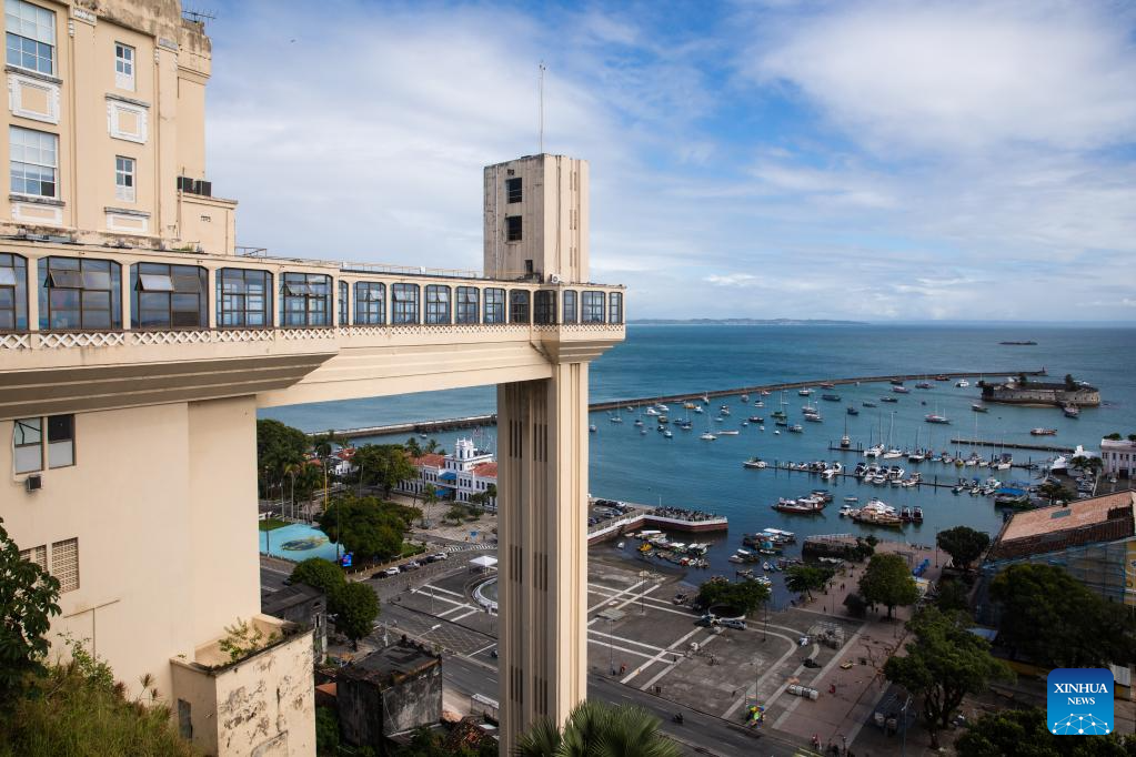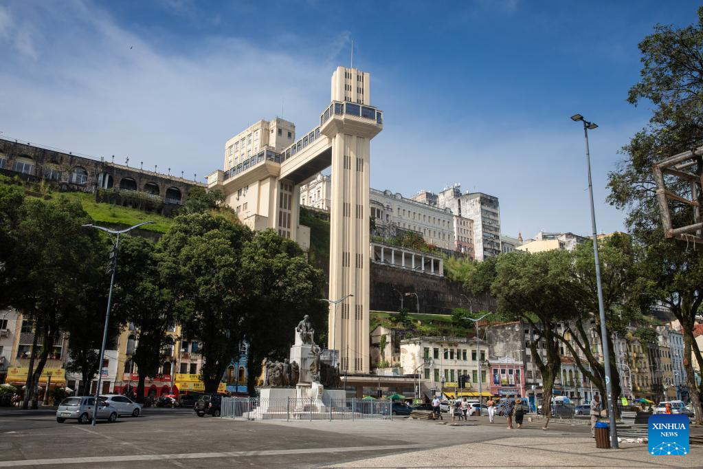 This photo taken on July 5, 2023 shows the Elevador Lacerda in Salvador, Bahia state, Brazil. (Xinhua/Wang Tiancong)