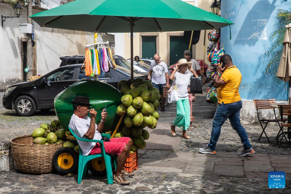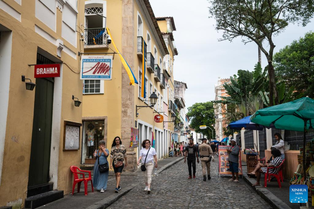 This photo taken on July 5, 2023 shows a street view at Pelourinho in Salvador, Bahia state, Brazil. (Xinhua/Wang Tiancong)
