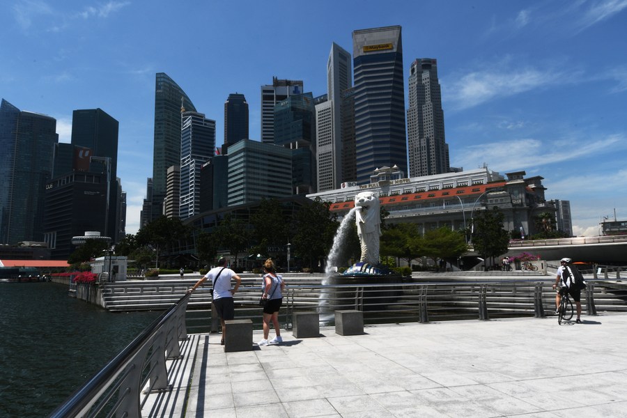 Photo taken on Feb. 17, 2022 shows the city skyline in Singapore. (Photo by Then Chih Wey/Xinhua)