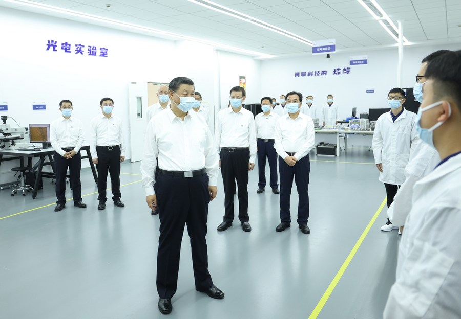 Chinese President Xi Jinping, also general secretary of the Communist Party of China (CPC) Central Committee and chairman of the Central Military Commission, visits a high-tech enterprise in Suzhou, east China's Jiangsu Province, July 5, 2023. Xi inspected the city of Suzhou from Wednesday afternoon to Thursday morning. (Xinhua/Ju Peng)