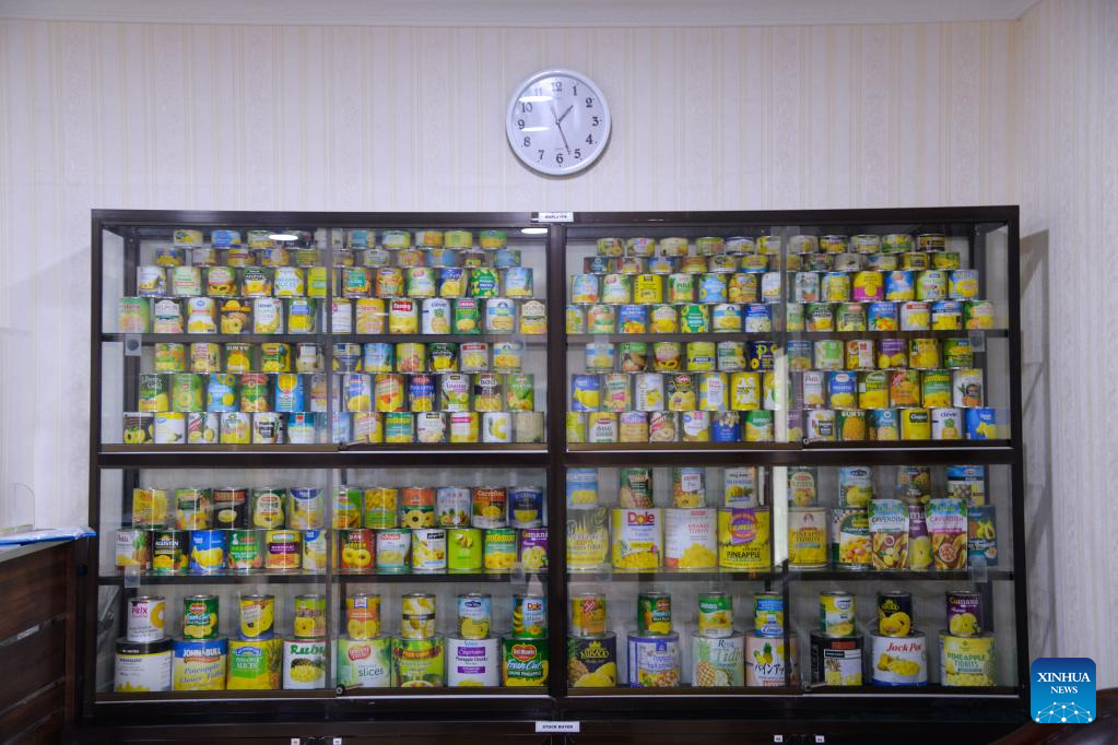 This photo taken on July 5, 2023 shows a cabinet displaying stock buyers' products at the factory department of PT. Great Giant Pineapple, a large private-label manufacturer of canned pineapples, in Terbanggi Besar of Lampung Province, Indonesia. (Xinhua/Xu Qin)