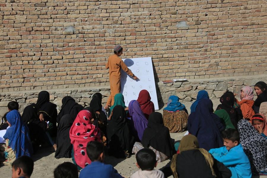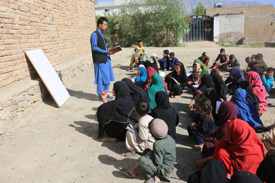 This photo taken on May 9, 2023 shows a charity class provided by a simple educational center named "Today Child Mobile School" in Kabul, capital of Afghanistan. (Photo by Saifurahman Safi/Xinhua)