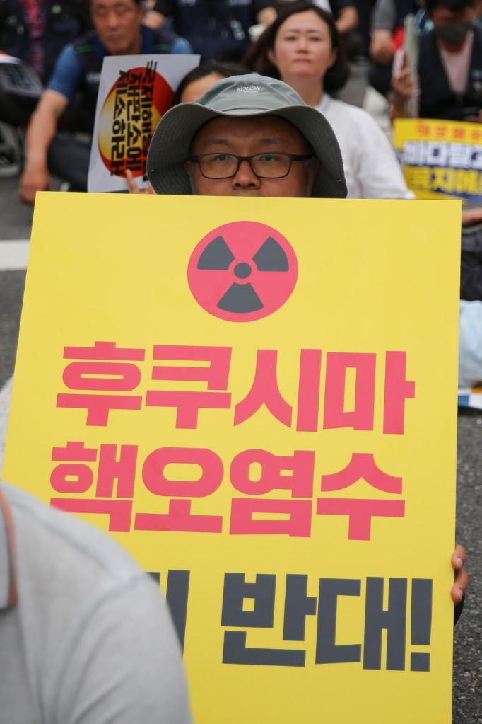 The protesters demonstrated near the South Korean foreign ministry building, where the visiting IAEA Director General Rafael Grossi was scheduled to meet with the South Korean foreign minister.