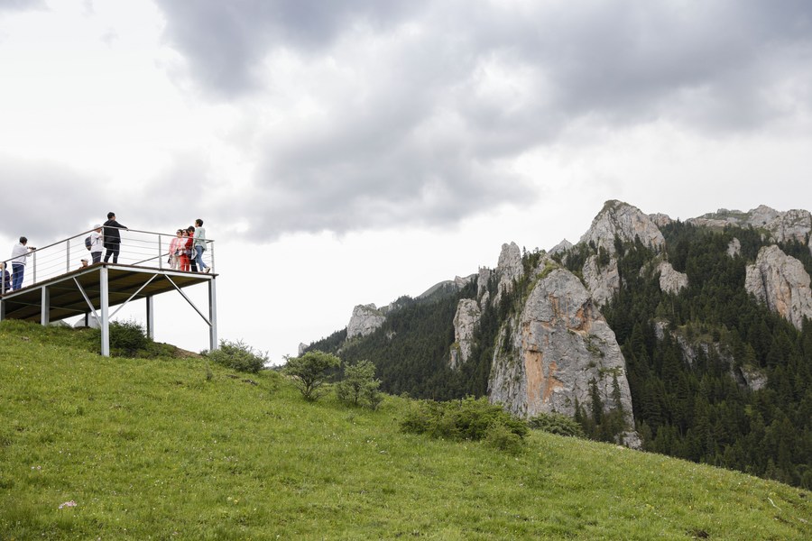 Tourists take photos at Zecha stone forest scenic spot in Luqu County of the Tibetan Autonomous Prefecture of Gannan, northwest China's Gansu Province, July 8, 2023. (Xinhua/Fang Xin)