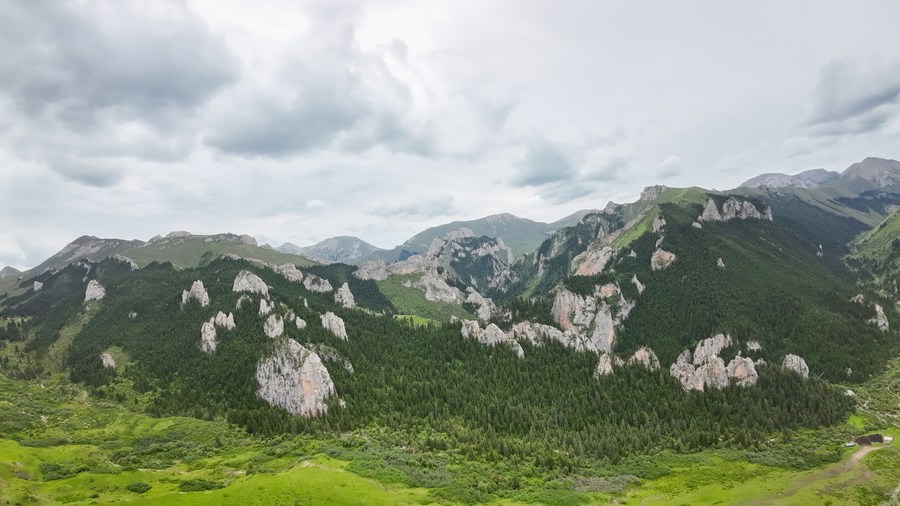This photo taken on July 8, 2023 shows a view of Zecha stone forest scenic spot in Luqu County of the Tibetan Autonomous Prefecture of Gannan, northwest China's Gansu Province. (Xinhua/Chen Bin)