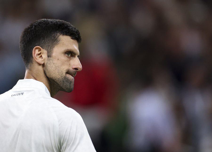 Novak Djokovic looks on during his Wimbledon men's singles fourth round match against Hubert Hurkacz. (Xinhua/Han Yan)