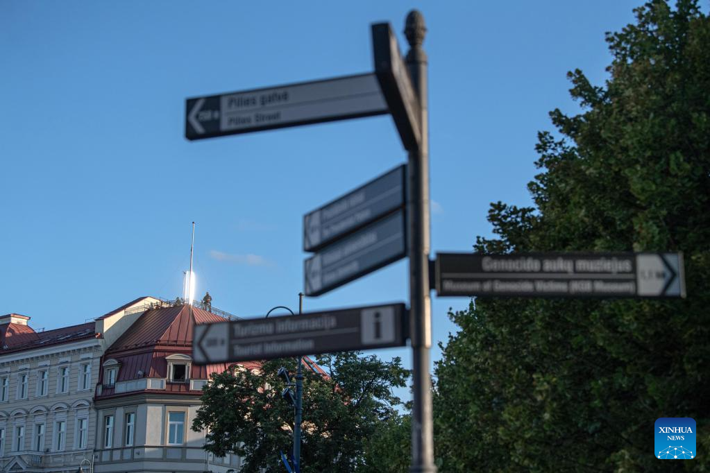 People walk in Vilnius, Lithuania, July 10, 2023. The NATO summit is slated for July 11-12 in Vilnius. (Photo by Alfredas Pliadis/Xinhua)
