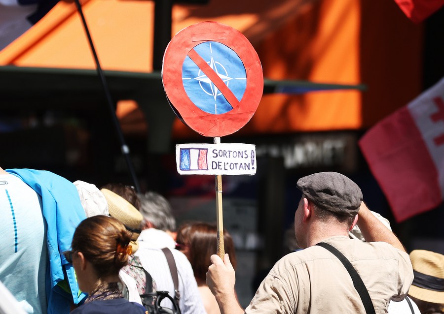 People attend a parade against NATO in Paris, France, July 8, 2023. (Xinhua/Gao Jing)