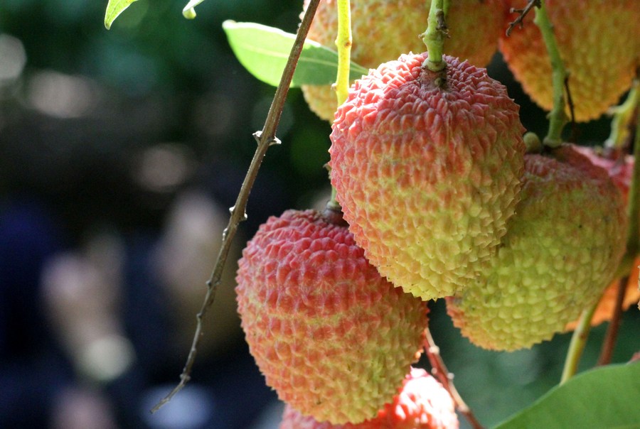 Lychee fruits are seen in an orchard on the outskirts of northwest Pakistan's Peshawar on July 10, 2023. (Photo by Saeed Ahmad/Xinhua)