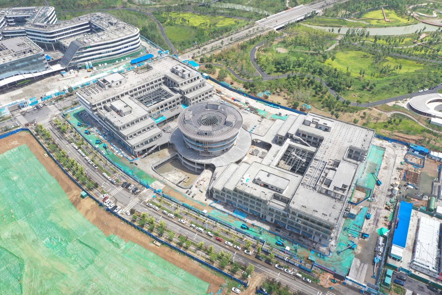 This aerial photo taken on July 4, 2023 shows the construction site of the China Telecom smart city industrial park in the start-up area in Xiong'an New Area, north China's Hebei Province. (Xinhua/Zhu Xudong)