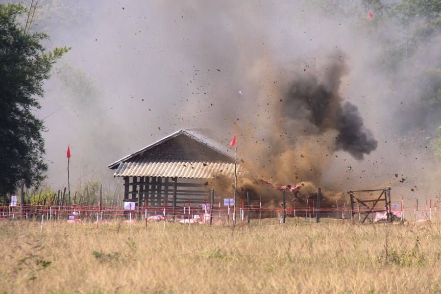 This photo taken on Nov. 8, 2010 shows an unexploded ordnance clearance activity held in Xiengkhuang Province, Laos. (Photo by Kaikeo Saiyasane/Xinhua)
