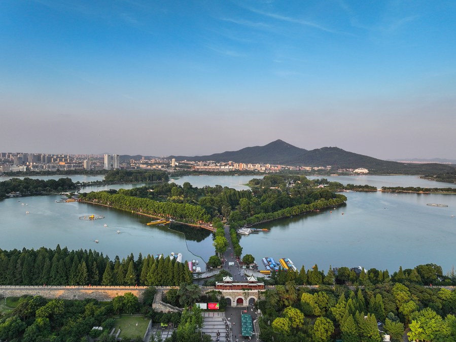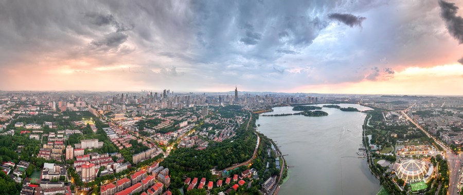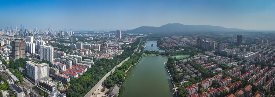 This aerial photo taken on June 9, 2023 shows the Xuanwu Lake and the city view in Nanjing, east China's Jiangsu Province. (Xinhua/Yang Lei)