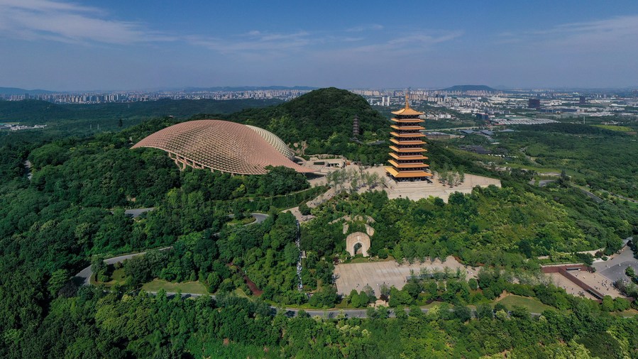 This aerial photo taken on June 8, 2023 shows the Niushou Mountain cultural tourism zone in Nanjing, east China's Jiangsu Province. (Xinhua/Li Bo)