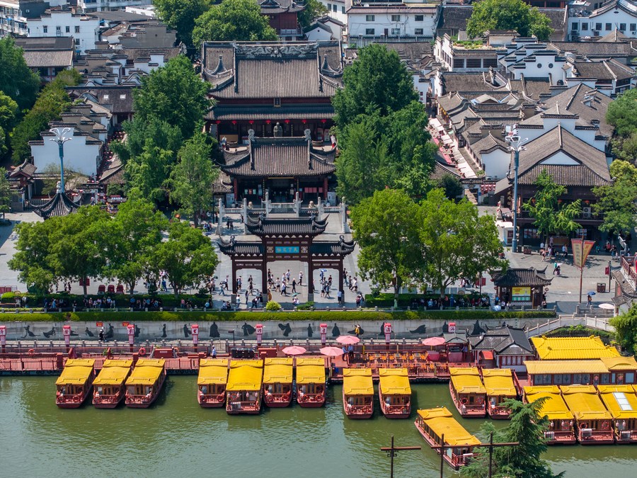 This aerial photo taken on June 12, 2023 shows the Fuzi (Confucius) Temple scenic area in Nanjing, east China's Jiangsu Province. (Xinhua/Li Bo)