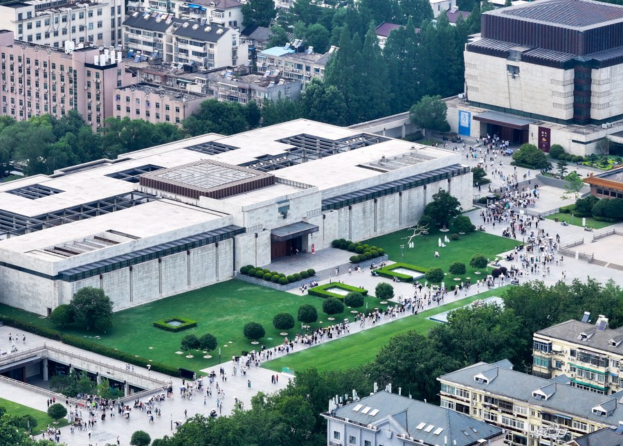 This aerial photo taken on June 11, 2023 shows people visiting the Nanjing Museum in Nanjing, east China's Jiangsu Province. (Xinhua/Yang Lei)