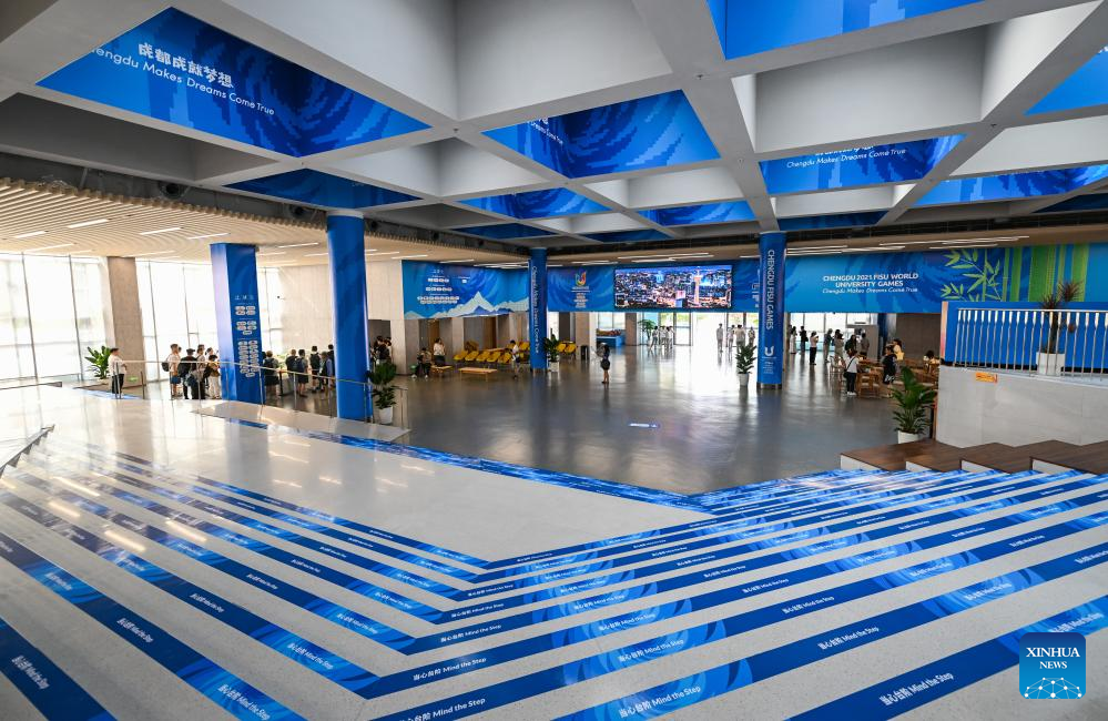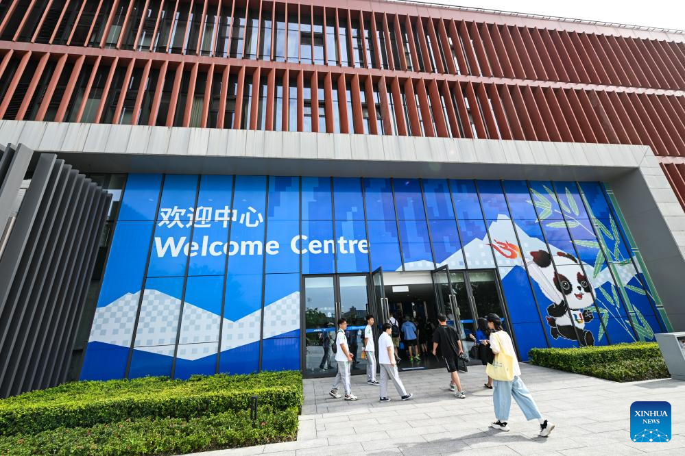 Photo taken on July 15, 2023 shows the Welcome Centre of the Universiade Village, Chengdu, southwest China's Sichuan Province. (Xinhua/Wang Xi)