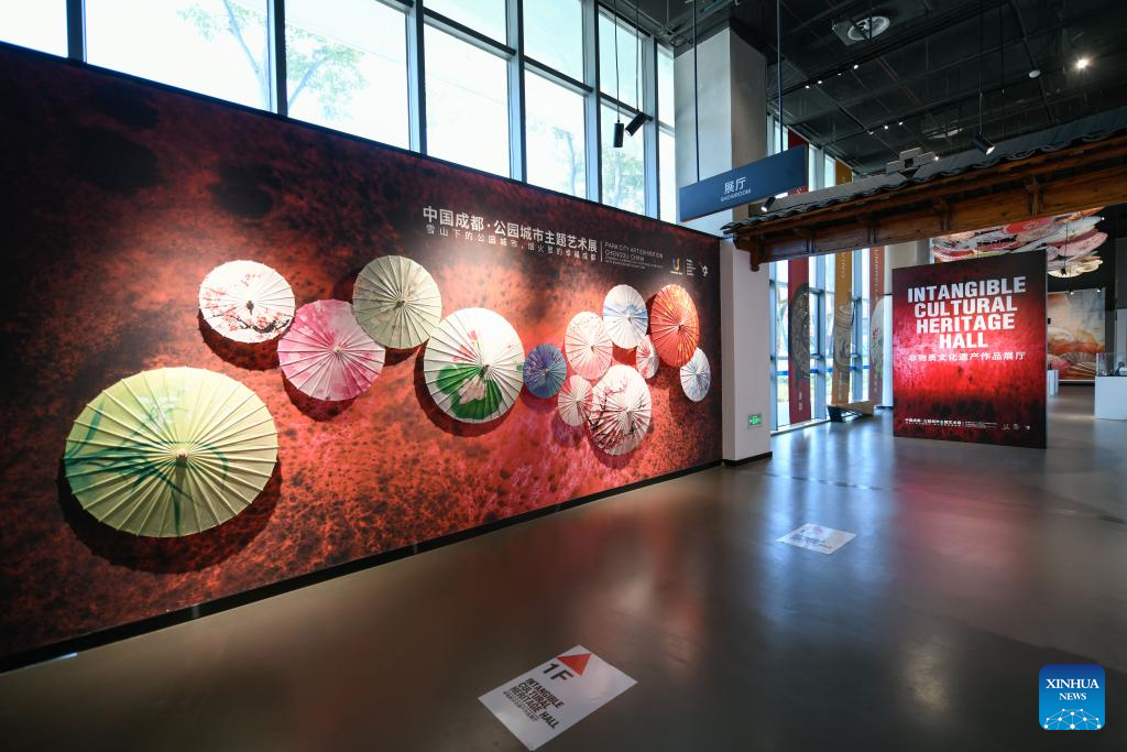 Photo taken on July 16, 2023 shows the intangible cultural heritage hall in the Universiade Village, Chengdu, southwest China's Sichuan Province. (Xinhua/Xu Bingjie)