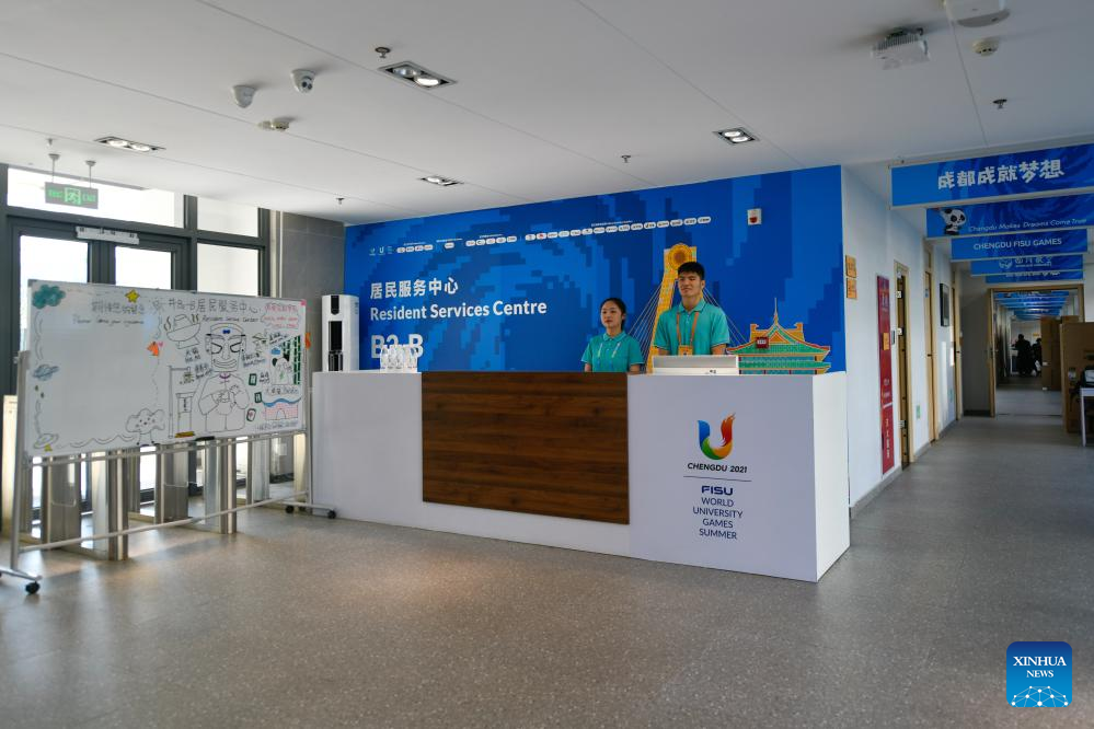 Photo taken on July 16, 2023 shows the Resident Services Centre in delegations' apartment in the Universiade Village, Chengdu, southwest China's Sichuan Province. (Xinhua/Xu Bingjie)