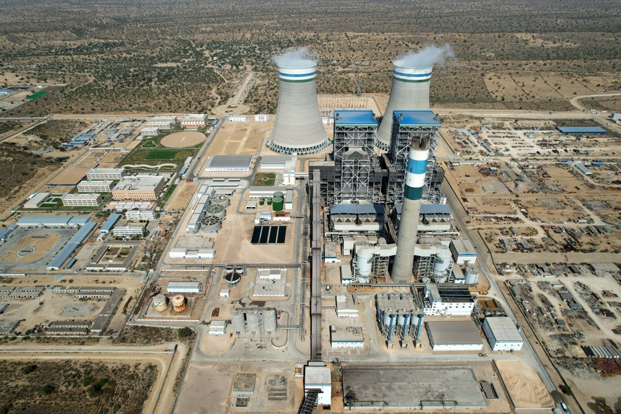 This aerial photo taken on Feb. 28, 2023 shows the view of the Thar Coal Block-I Coal Electricity Integration project in Sindh province, Pakistan. (Thar Coal Block-I Power Generation Company (Pvt) Limited/Handout via Xinhua)